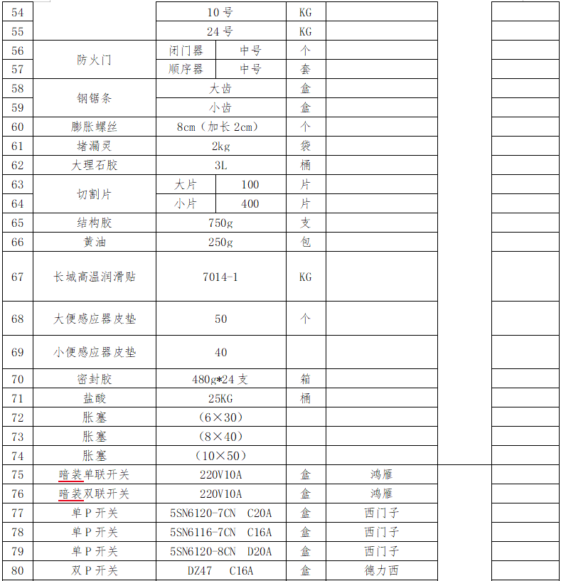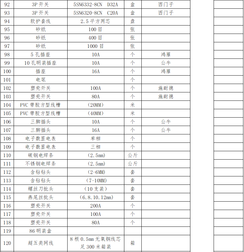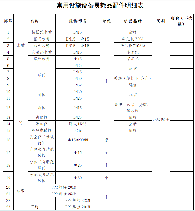 有品牌规格型号要求注明的请严格按提供型号报价,未标明品牌的按市场常见常用品牌报价。