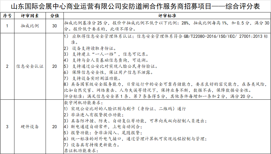 (四)招商方式:综合评分。